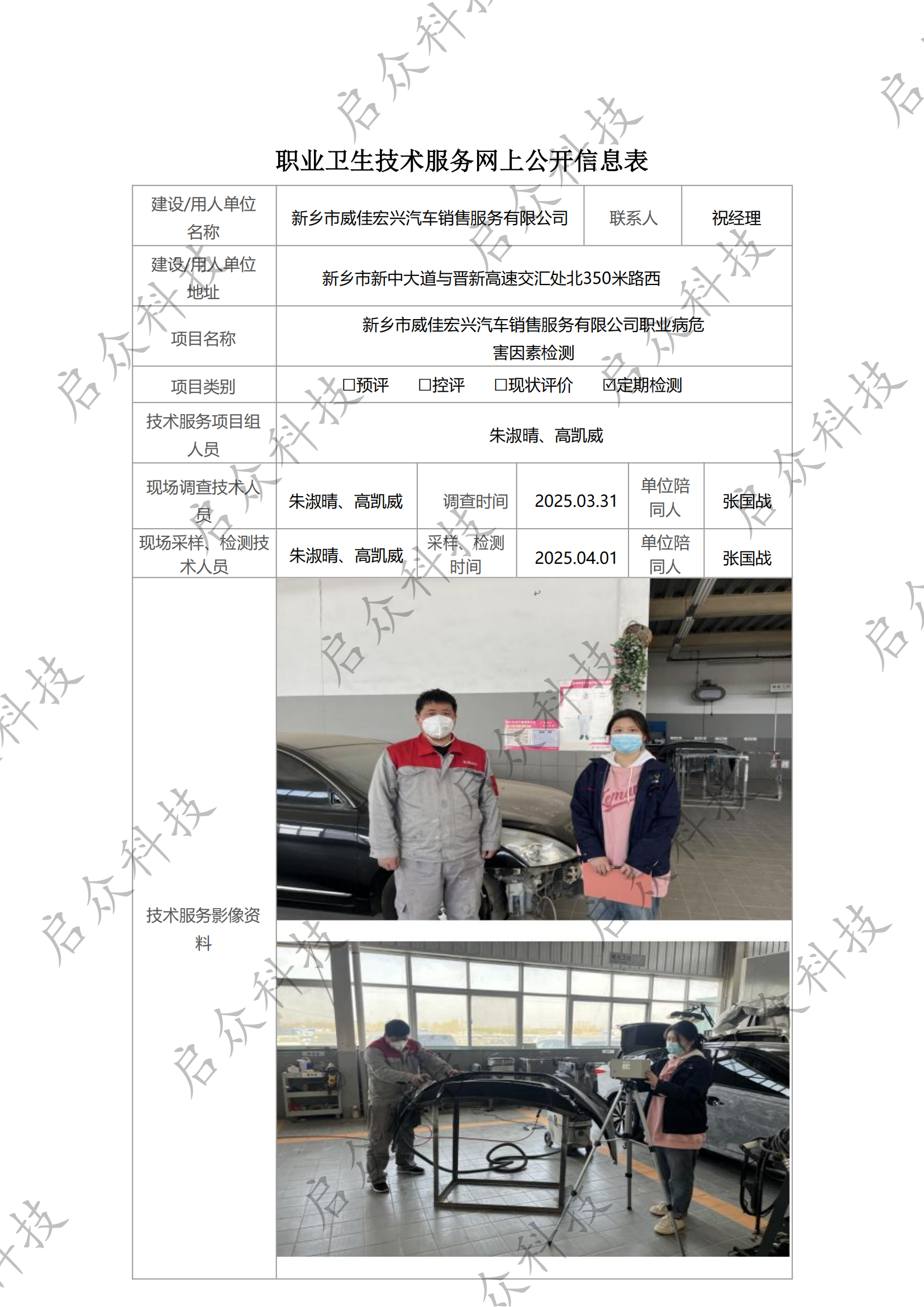新乡市威佳宏兴汽车销售服务有限公司职业病危害因素检测