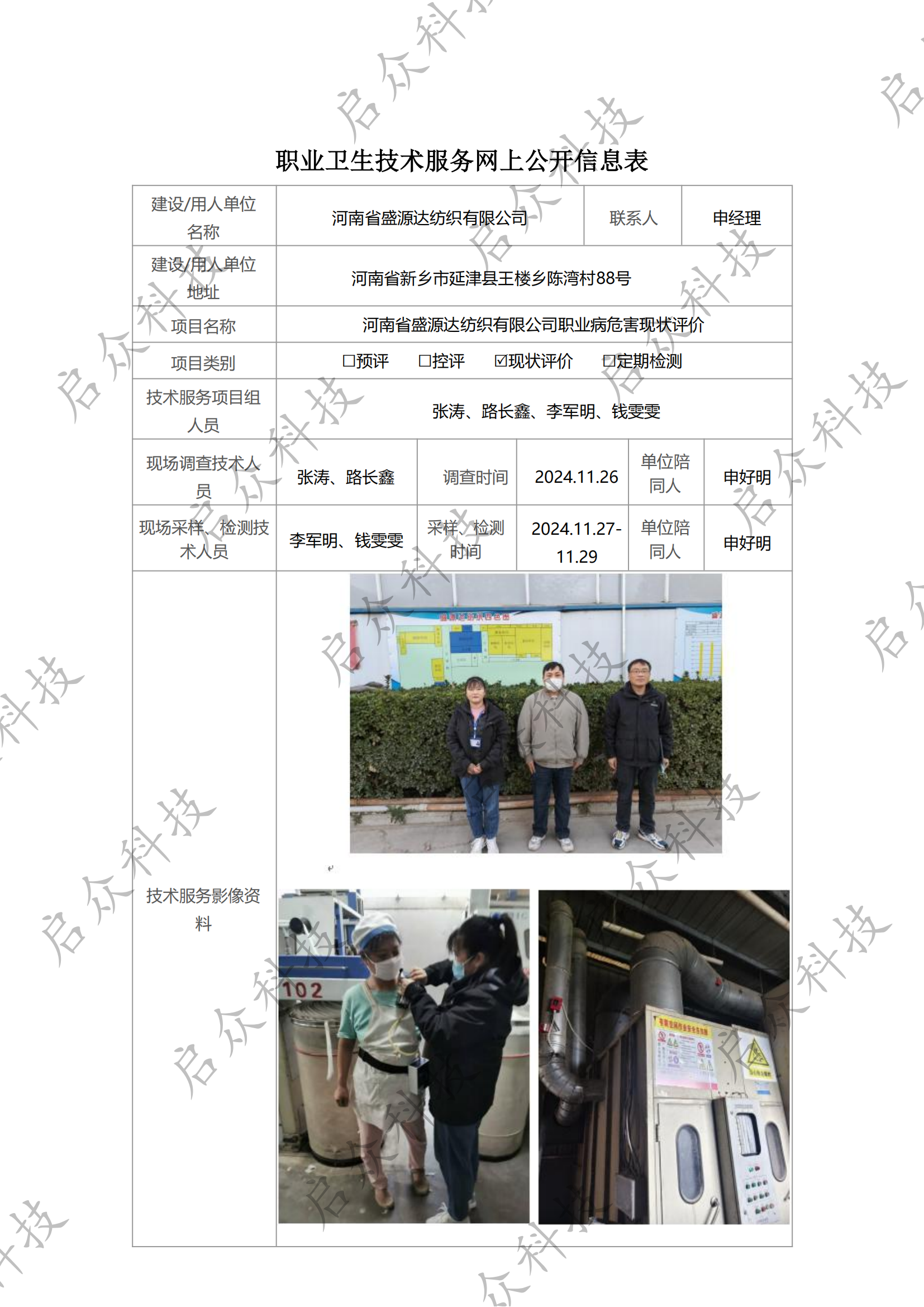 河南省盛源达纺织有限公司职业病危害现状评价