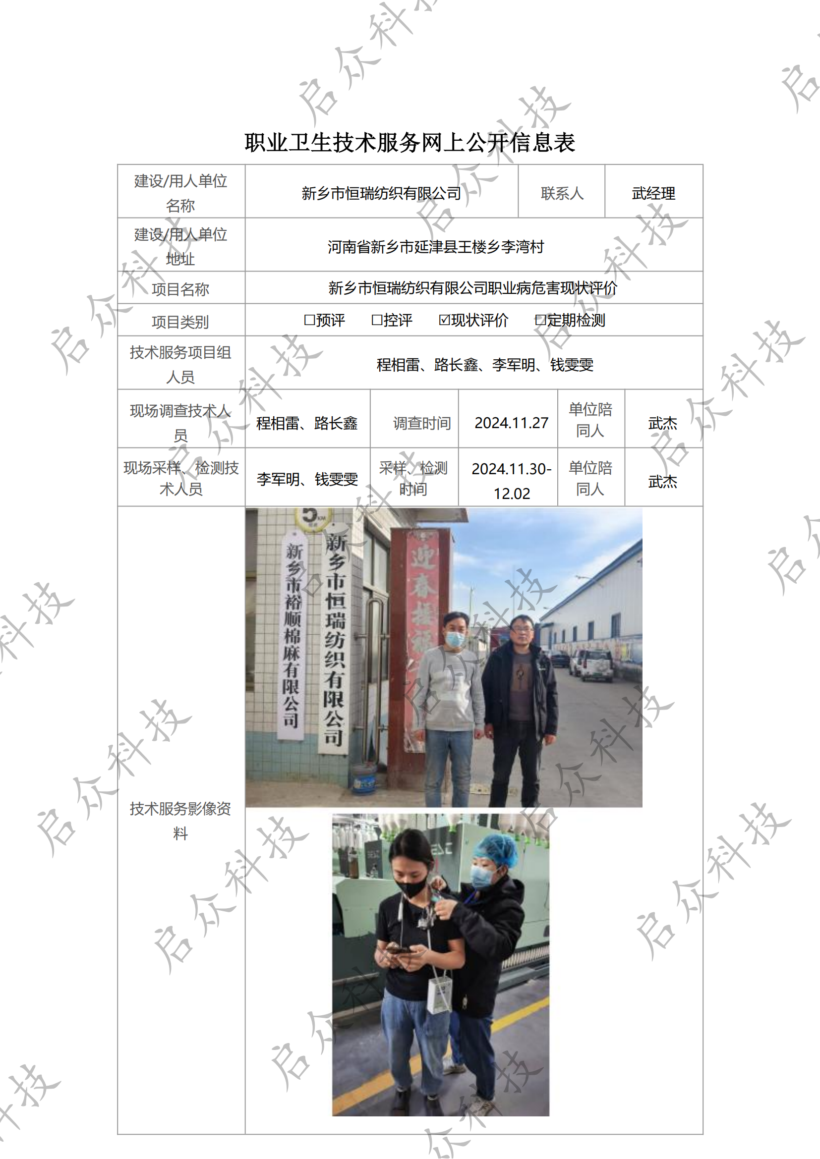 新乡市恒瑞纺织有限公司职业病危害现状评价