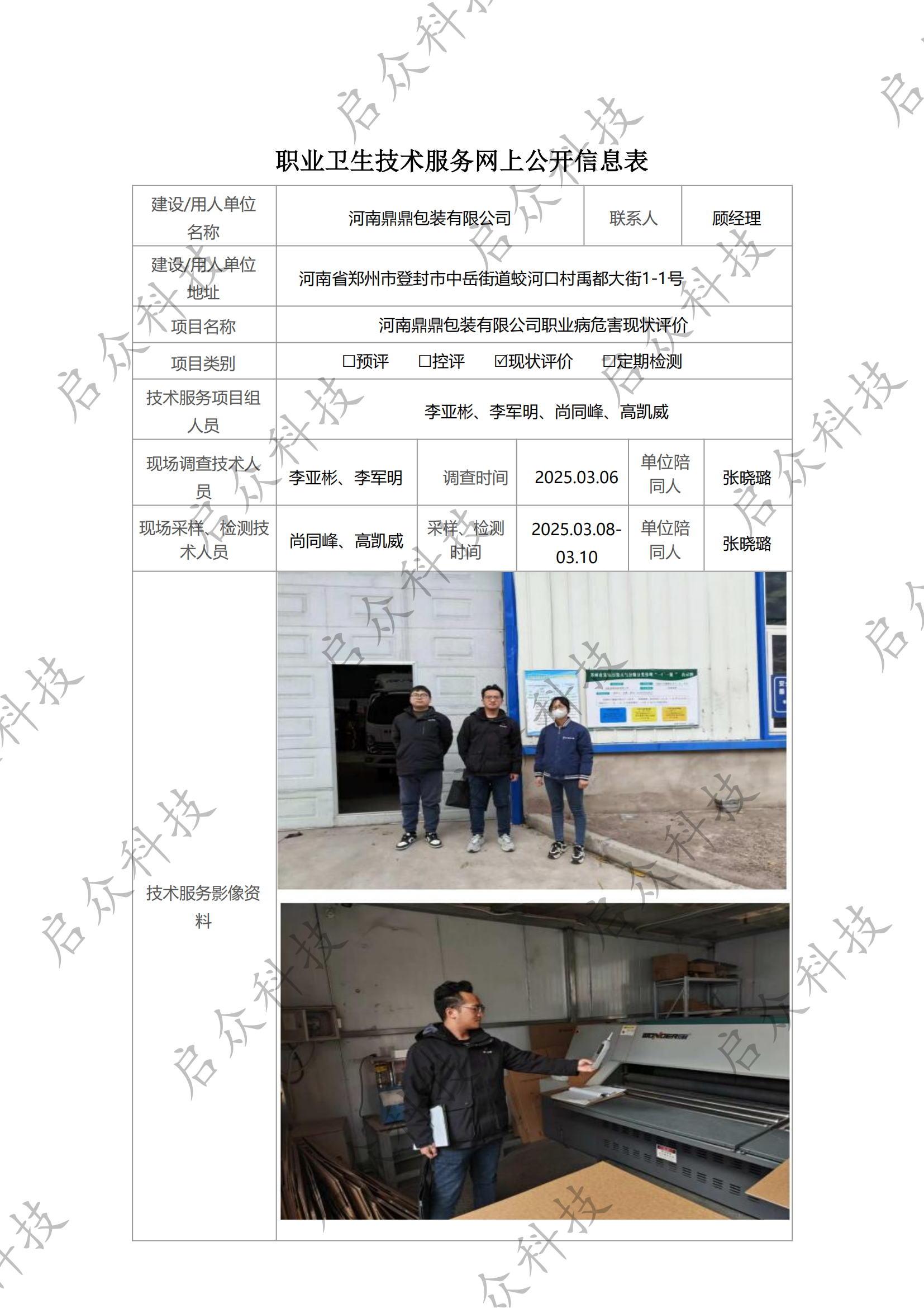 河南鼎鼎包装有限公司职业病危害现状评价
