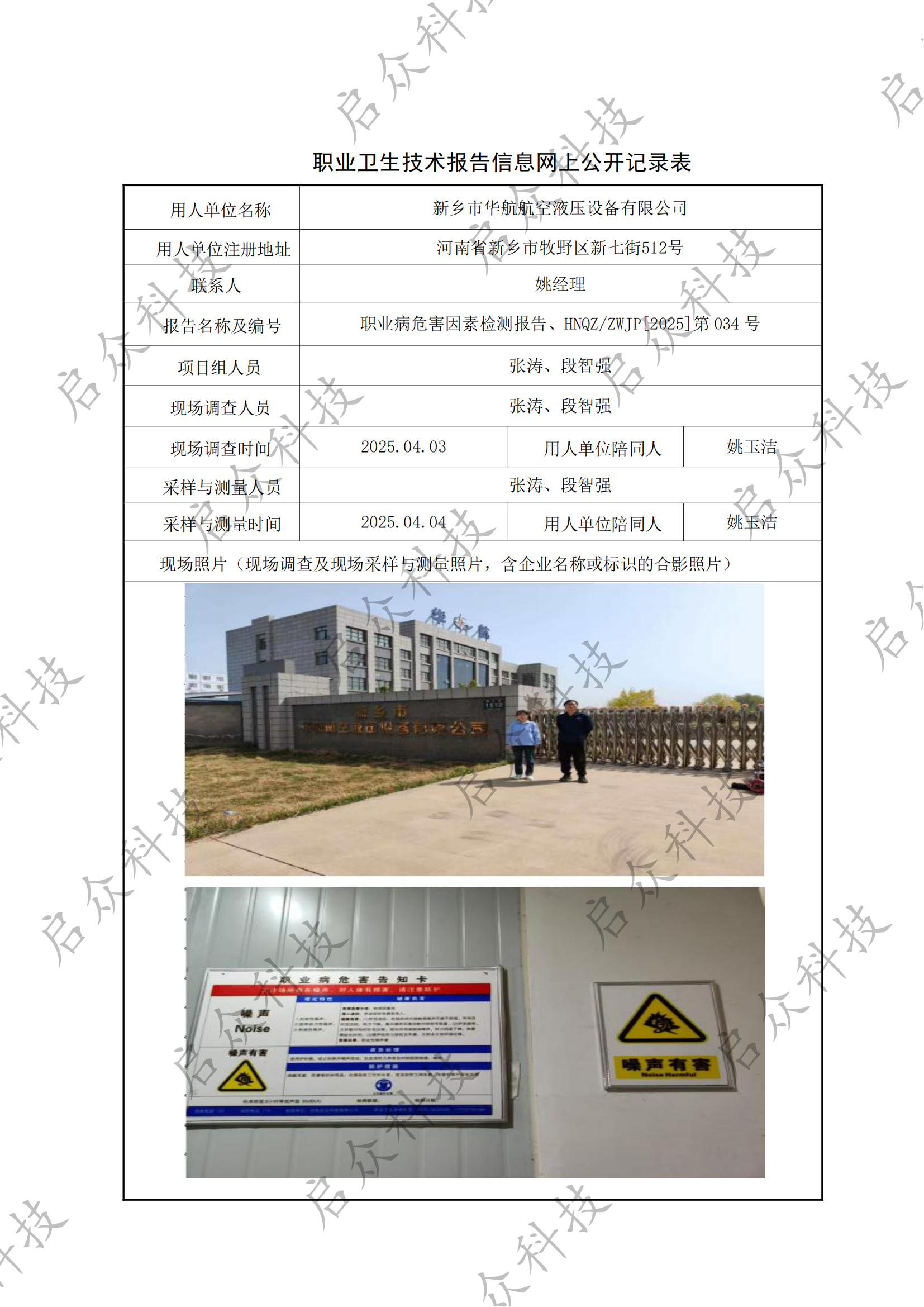 新乡市华航航空液压设备有限公司职业病危害因素检测