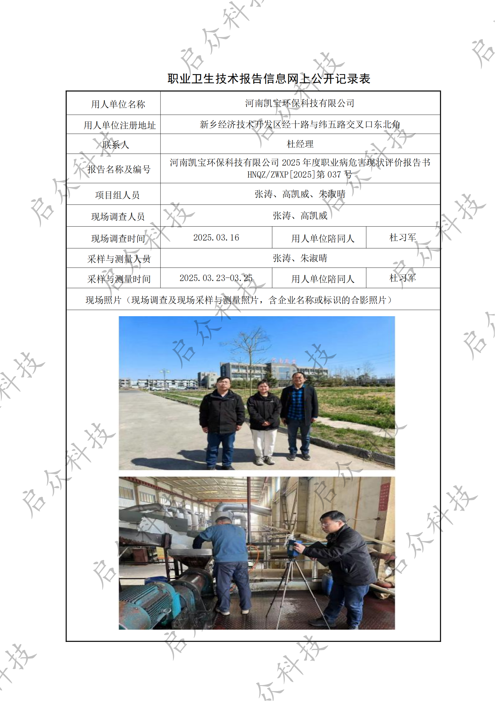 建设项目和工作场所职业病危害因素检测与评价